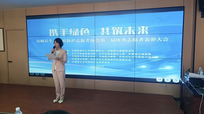 2024 年 8 月 27 日,交城縣生態(tài)環(huán)境保護(hù)志愿者協(xié)會(huì)第三屆優(yōu)秀志愿者表彰大會(huì)在田園書院成功舉辦。參會(huì)領(lǐng)導(dǎo)有中共交城縣委常委、宣傳部部長(zhǎng)王軍軍、中共交城縣委社會(huì)工作部部長(zhǎng)王華、交城縣水利局局長(zhǎng)張五寧、共青團(tuán)交城縣委副書記張佳敏、交城縣科學(xué)技術(shù)協(xié)會(huì)副主席梁爽、呂梁市生態(tài)環(huán)境局交城分局監(jiān)控中心主任薛鯤、呂梁市生態(tài)環(huán)境保護(hù)志愿者協(xié)會(huì)會(huì)長(zhǎng)張晉。