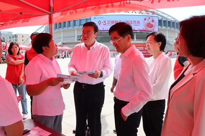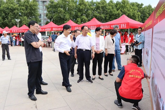 活動現場,晉城市委常委、市委統戰部部長、市委政法委書記石云峰,市人大常委會副主任史曉莉、市政協副主席常先勤,市人大常委會原副主任、市慈善總會會長尹紅巖,市民政局局長王濤、司法局局長傅彥虎,市慈善總會副會長張曉奎、閆通宇等,逐一走過各個攤位,認真聽取工作人員的介紹,與大家親切交流,了解他們對慈善事業的看法和建議。