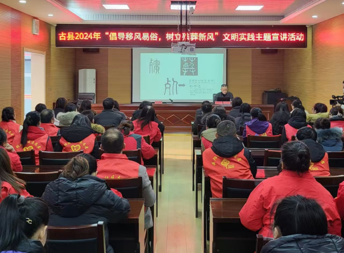 為進一步弘揚文明新風尚,褒揚新風、摒棄陋習,積極引導群眾踐行厚養薄葬的孝道理念,培育健康文明的祭祀新風尚,12月11日,古縣民政局攜手縣精神文明建設服務中心,在古縣職工幫扶中心成功舉辦了以“倡導移風易俗,樹立殯葬新風”為主題的文明實踐宣講活動。此次活動吸引了來自各鄉鎮的宣傳委員、民政員及各社區網格員共計70余人參與。