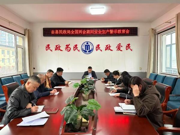 此次會議的召開,不僅增強了古縣民政局全體干部職工的安全生產意識,也為全國兩會期間的安全生產工作奠定了堅實基礎。未來,古縣民政局將繼續加大安全生產工作力度,確保民政服務機構的安全穩定運行,為人民群眾提供更加優質的服務。