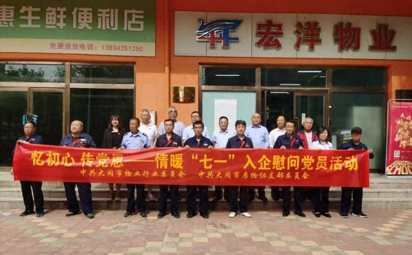 在中國共產黨成立 104 周年的重要時刻,中共大同市物業行業委員會與中共大同市房物協支部委員會秉持公益精神,以黨建為引領,聯合發起 “憶初心,傳黨恩 —— 情暖七一” 入企慰問公益行動,為大同市凱興物業管理有限責任公司等三家物業服務企業的基層黨員送去溫暖與關懷,以實際行動詮釋公益擔當,踐行黨的初心使命。