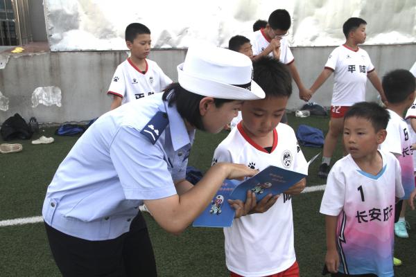 活動最后,民警向孩子們發出倡議,鼓勵大家爭當 “交通安全小使者”,通過 “小手拉大手” 將學到的知識傳遞給父母親友,共同營造安全有序的道路交通環境。“希望孩子們既能在球場上揮灑活力,也能在出行中守護安全。”